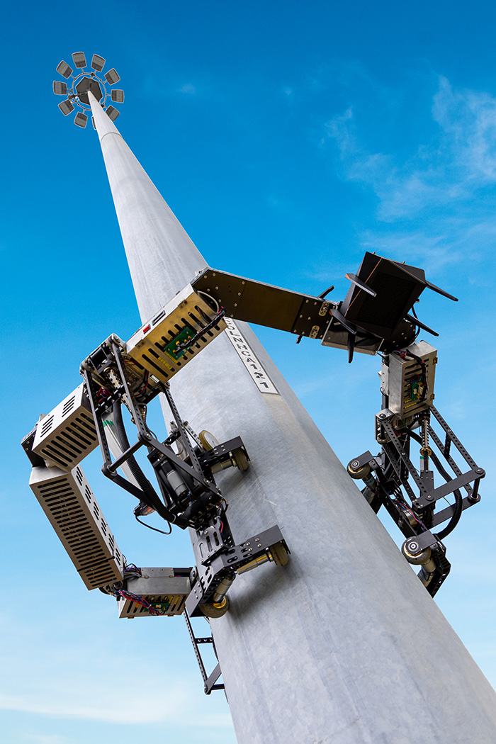 生產力局表示,獲獎的「攀影蜘蛛」與智藝綠色照明有限公司合作研發,能夠從地面爬上高達35米的高桿燈,運用360度攝像機檢查及記錄高桿燈的鏽蝕狀况。機械人設後備傳輸系統,若空中無線網絡連接強度不足,機械人無法接收工程師的地面指令,也可藉後備系統返回地面。技術可用於機場、橋樑、體育場、高速公路和隧道等不同基建場景。