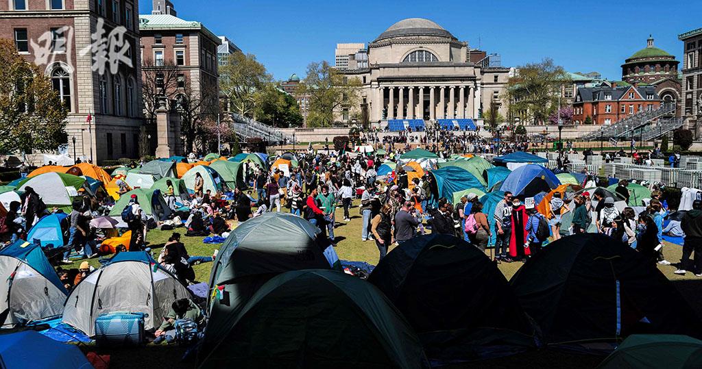 以色列與巴勒斯坦武裝組織哈馬斯戰爭持續,美國哥倫比亞大學學生上周三(17日)發起在校徹夜紮營示威聲援巴勒斯坦,並舉辦穆斯林和猶太教徒祈禱聚會,公開發言譴責以色列及錫安主義,聲援巴勒斯坦反抗。至今超過100人被拘捕,校方亦暫令參與示威的學生停學。