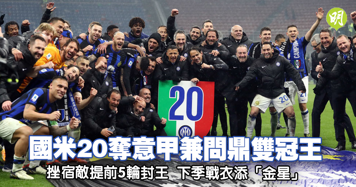 意甲|國米挫宿敵提前5輪封王 隊史20奪意甲兼問鼎雙冠王 下季戰衣添「金星」 (20:00)