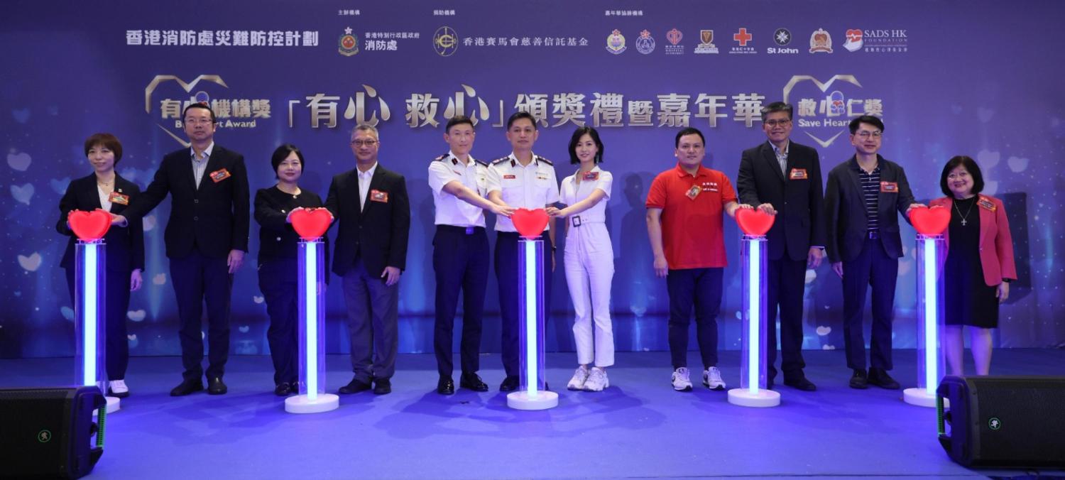 消防處今(27日)在荃灣愉景新城舉行「有心.救心」頒獎禮暨嘉年華,表揚參與上述計劃、推動裝設AED的26個機構,向他們頒發全年大獎及傑出表現獎。計劃鼓勵公私營機構在轄下處所及設施設置AED,處方同時推出網上資訊平台,讓公眾獲取AED位置及其他相關資料。