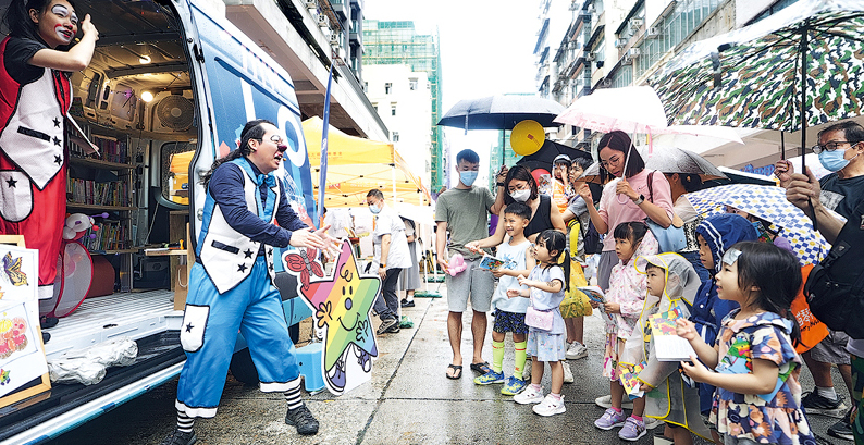 【明報專訊】噚日天氣時晴時雨,深水埗街頭嘉年華「織善社區節」就風雨不改,活動喺大南街一帶舉行,設40個唔同主題嘅攤位活動同大型打卡藝術裝置,主題圍繞深水埗區嘅故事,吸引逾5000人參與。