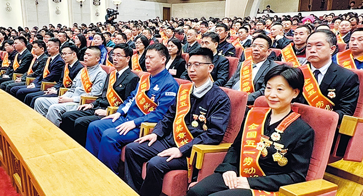 【明報專訊】2024年慶祝「五一」國際勞動節暨全國五一勞動獎和全國工人先鋒號表彰大會昨天(28日)在北京人民大會堂舉行,表彰全國五一勞動獎狀255個、全國五一勞動獎章1088個、全國工人先鋒號1034個。今年的五一表彰全面貫徹中共二十大精神和全國兩會精神,在表彰對象中,有48.6%的獎狀、33.7%的獎章、35.5%的先鋒號屬於發展「新質生產力」的對象,佔全部獲表彰者近四成。另外,有84.4%的獎狀、71.4%的獎章、74.9%的先鋒號屬於二十大報告強調的產業或本地區的重點產業。表彰對象以製造業、電力、燃氣、建築業、交通運輸、信息傳輸等相關行業居多。