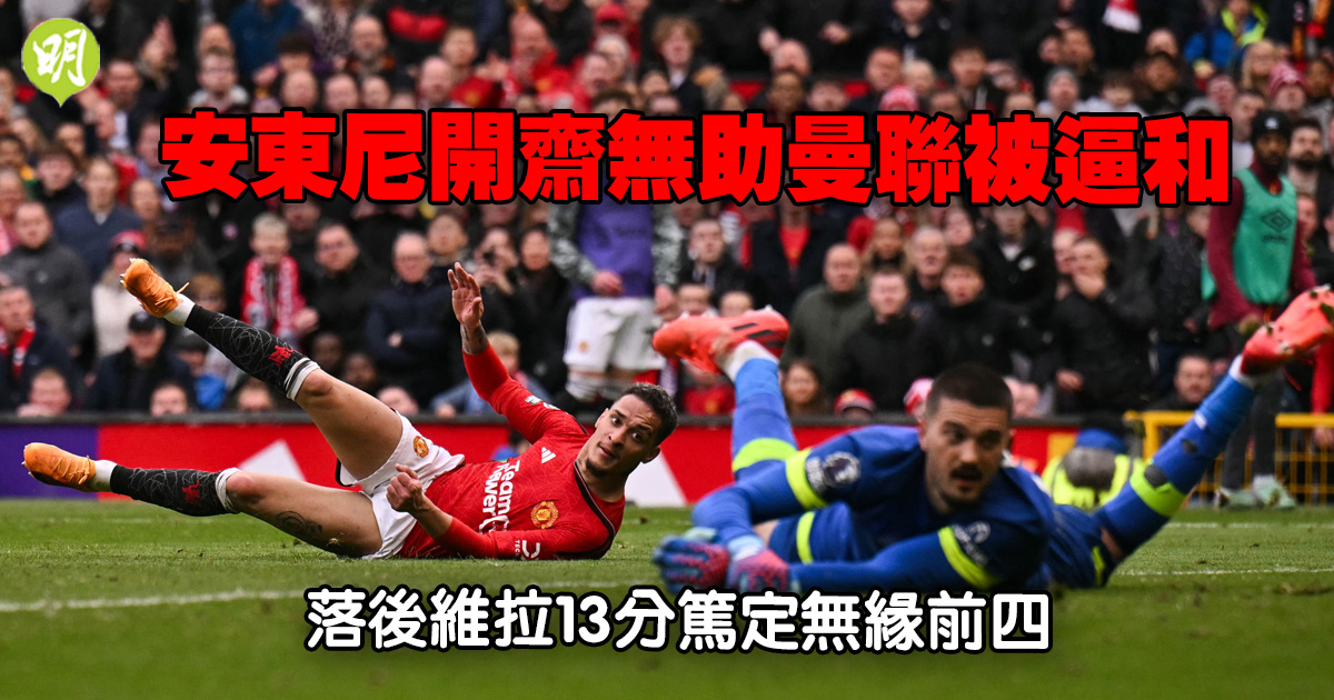 曼聯今晨(28日)雖由安東尼馬菲奧斯在79分鐘射入英超首球,惟8分鐘後因隊友接連犯錯導致輸12碼,結果被排尾二的般尼完場前逼和1:1,賽後34戰得54分,落後主場以2:2打和車路士的「四哥」阿士東維拉13分,今季鐵定無緣前四。