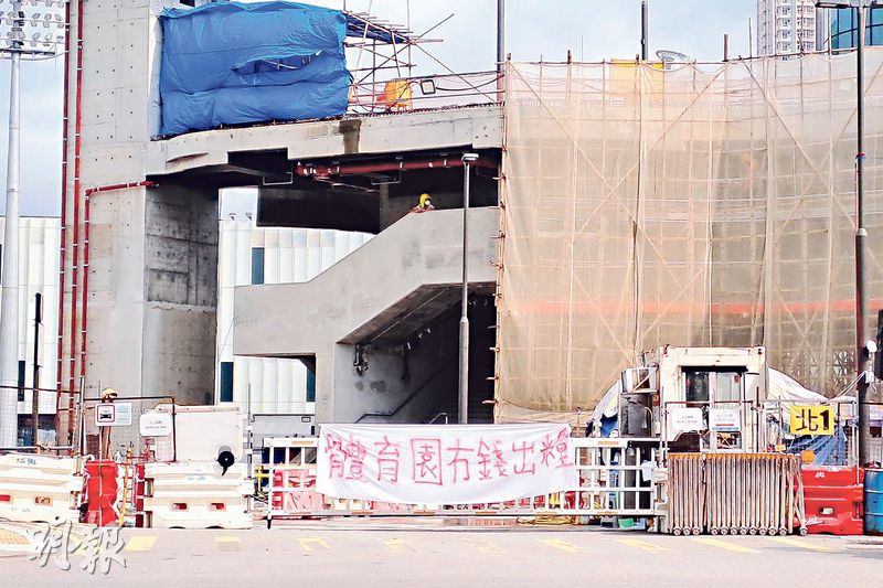 昨早8時許,約20名工人聚集於啟德體育園地盤北1閘口外追討薪金,有人掛上以白布製成的橫額,上面紅字寫着「體育園冇錢出糧」;稍早時亦有工友於北6閘口外展示「協興無良僱主」、「分判雲石、世鴻國際有限公司」等白底紅字手寫橫額。請願的工人一度堵塞現場車輛出入口。警方接報到場了解,其後安排工人進入地盤與資方代表交涉。