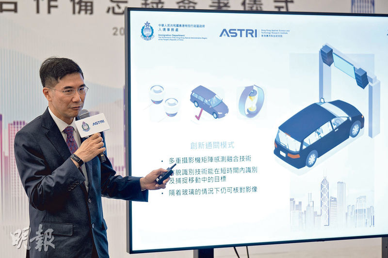【明報專訊】入境處首度與香港應用科技研究院合作,在通關模式等4個範疇探討創科方案,為期3年。現時跨境車輛的司機及乘客,需在檢查亭接受人手核實身分的程序。應科院行政總裁葉成輝建議日後透過「容貌識別技術」推行免下車自動通關,包括用「多重攝影機矩陣感測融合技術」、AI演算法及失焦去模糊引擎等,屆時系統在相隔車輛玻璃下,仍能在短時間內識別及核對市民的容貌。