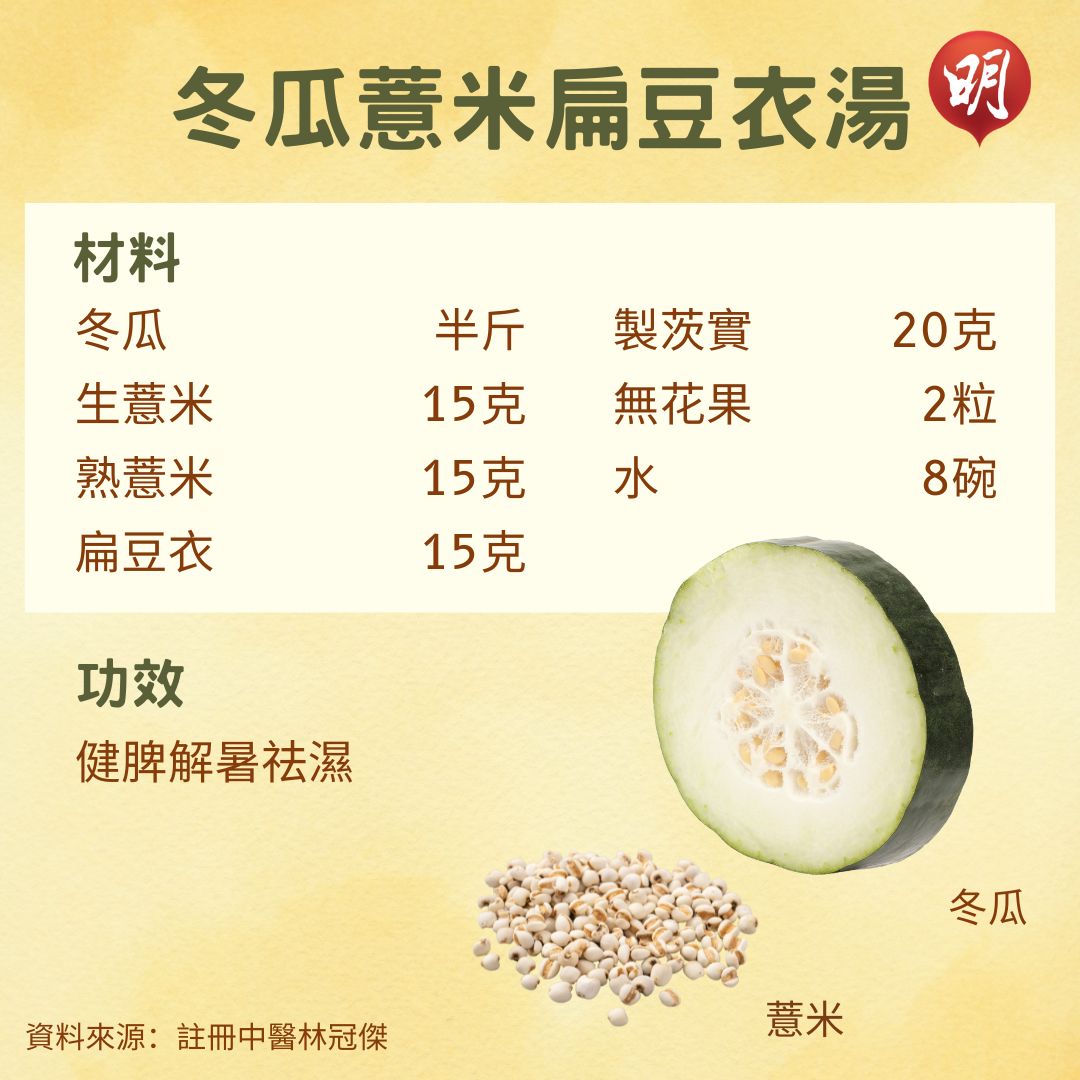 1.冬瓜薏米扁豆衣湯(2至3人分量)