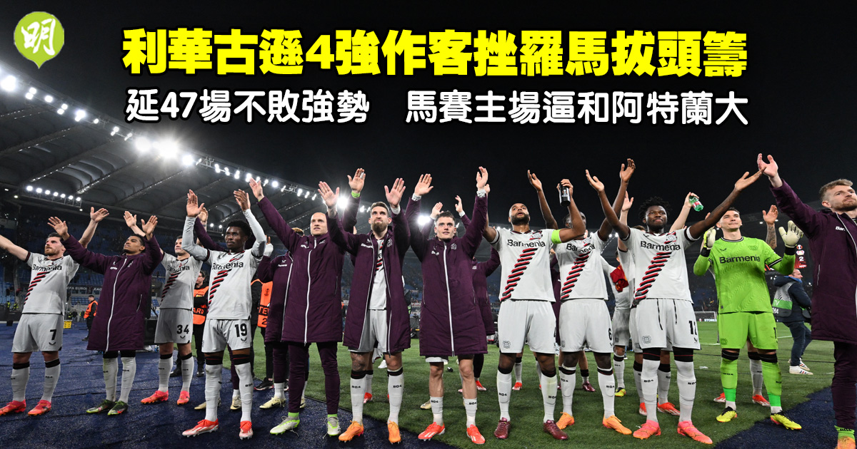 歐霸今晨(3日)上演兩場4強首回合賽事,新科德甲冠軍利華古遜作客意甲球隊羅馬,藉德國隊鋒將科利安華迪斯及中場艾德列治上、下半場先後建功,以2:0挫「首都狼」凱旋並延續今季各賽事47場不敗走勢。另一意甲代表阿特蘭大則被主場的法甲球隊馬賽逼和1:1。