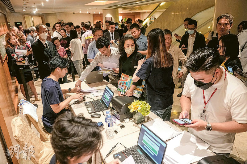 【明報專訊】不少內地客趁「五一黃金周」來港,發展商把握時機賣樓,資策(0497) 佐敦高臨昨晚以價單形式首輪開售104伙,截至11時沽出86伙,更有內地客斥3800萬元連掃5伙。項目昨亦透過招標發售6伙特色戶,並即日售出5伙,實呎更高見近3萬元。換言之,項目單日暫累售91伙,即佔全日推售單位110伙的逾八成。發展商稱,短期擬加推。另一邊廂,以折實均呎低見約1.43萬元、重返同系2017年售價的新地(0016)元朗The YOHO Hub II ,以現樓形式搶奪二手客源,市場消息指,項目昨日為首日接受認購登記,即收逾1500票(以本票數目計),以項目首批188伙計,暫超額認購近8倍。