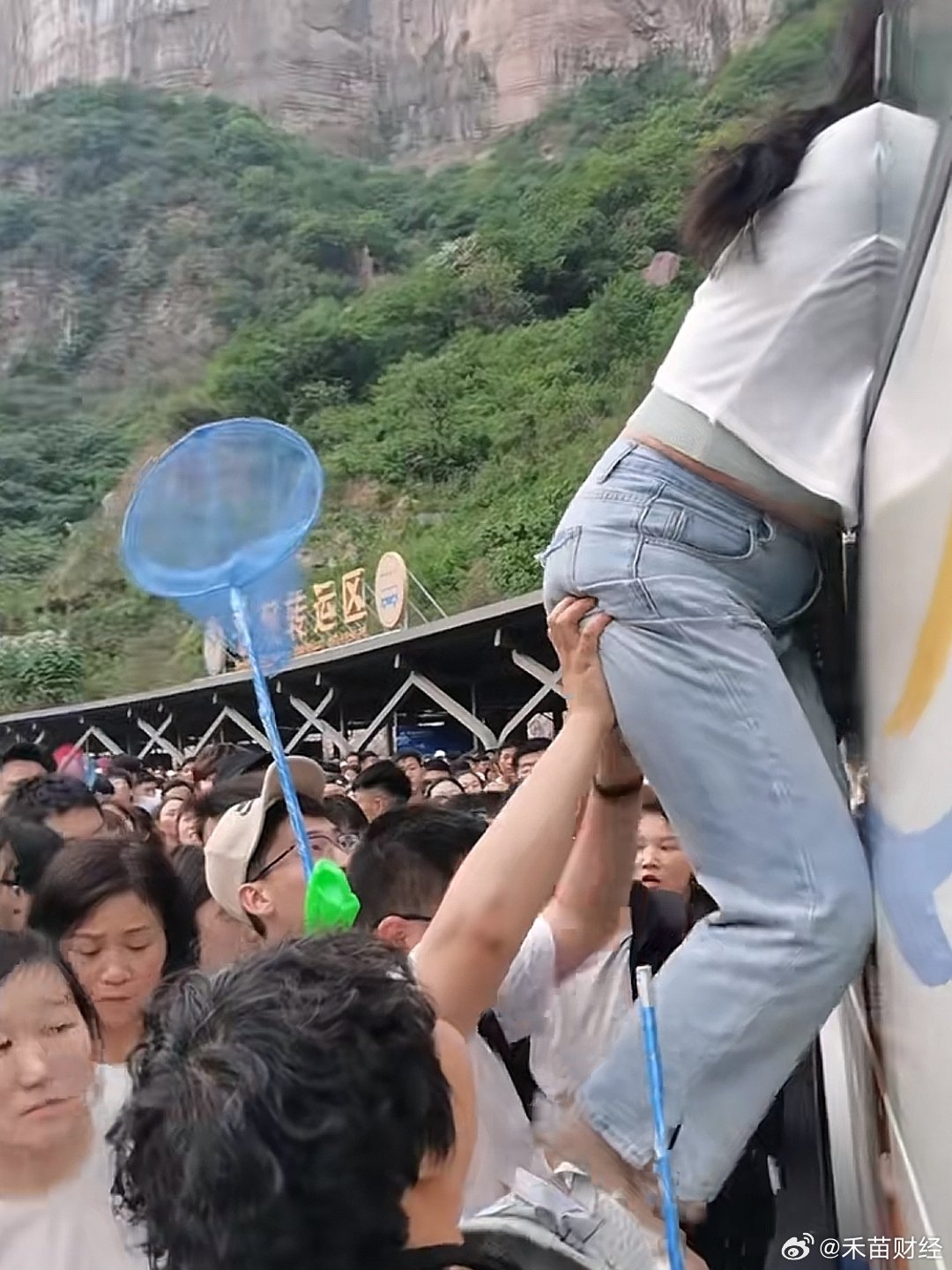 網傳影片可見,新鄉寶泉大批遊客滯留,有大量遊客在高喊:「退票!退票!」據現場遊客反映,寶泉景區在五一假期期間持續湧入大量遊客,但景區沒有提前預判遊客數量,也沒有採取有效限流措施,導致遊客數量迅速攀升,景區內人滿為患。由於交通運輸有限,他們只能徒步十幾公里的山路下山。