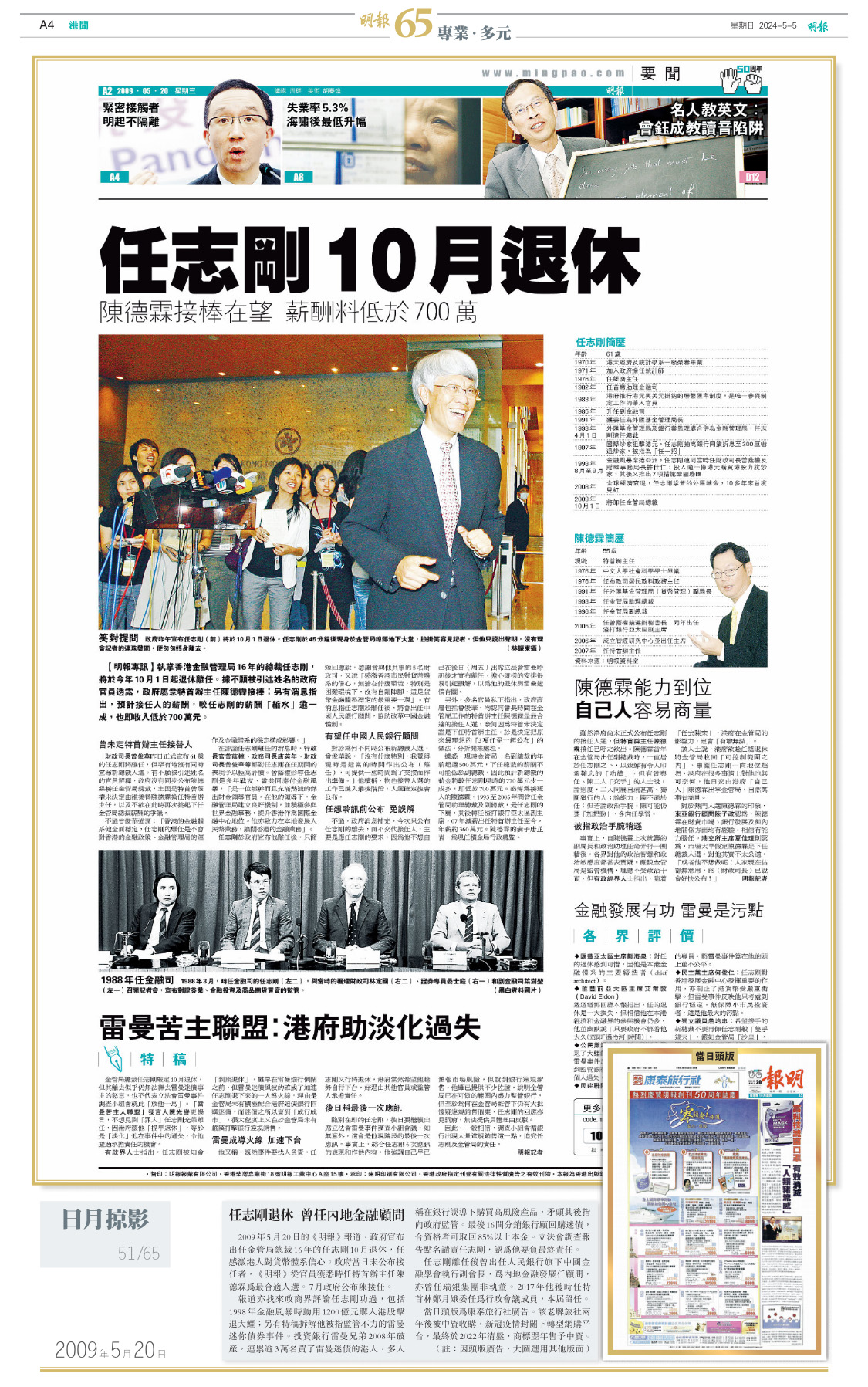 2009年5月20日:任志剛退休 曾任內地金融顧問