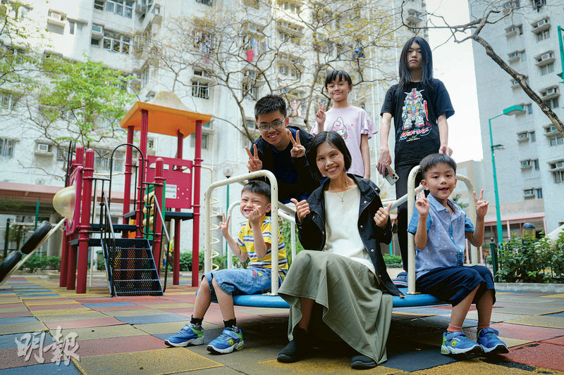 不過,在不婚不育主義當道的社會,「生得多」已經是原罪,「聽過一些批評,認為這個年頭,根本不應該生這麼多小朋友,指我這樣做分薄了子女的資源,對他們不公平」。若說金錢資源,誠然,在商界任職公關高層的Maggie和從事資訊科技行業的丈夫,假如只組織一個小家庭,絕對有條件過優質的中產生活,惟現時要供養5個孩子,無可避免,生活質素打了折扣,但他們還是衣食溫飽,「我們的確沒能力供5個小朋友讀私校,那便全部讀津校囉;外出吃飯也是少的,但特別的日子,例如生日,還是會一起去慶祝的;其他家長,或許能投放大量資源給小朋友上很多興趣班,我就對準他們真正所好,例如大哥現在主力學打籃球,細佬和細細佬除了學打籃球,還學鋼琴和圍棋」。她笑指,5個小朋友至今還未坐過飛機外遊,但今年暑假,應該有機會實現他們的願望!