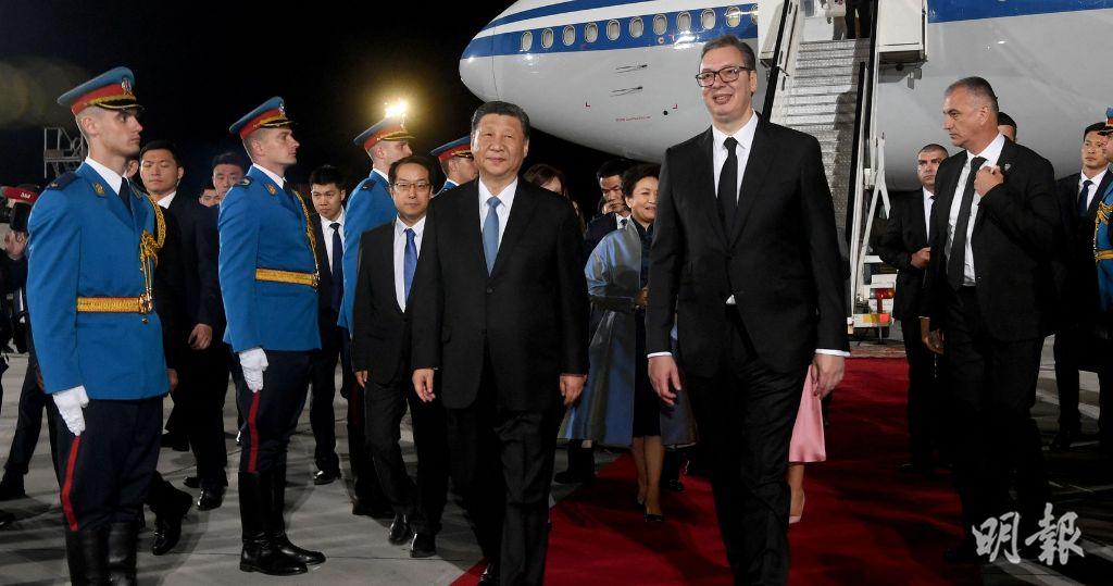 國家主席習近平完成對法國國事訪問後,於當地時間周二晚上轉抵塞爾維亞首都貝爾格萊德,塞爾維亞總統武契奇夫婦等人在機場迎接。