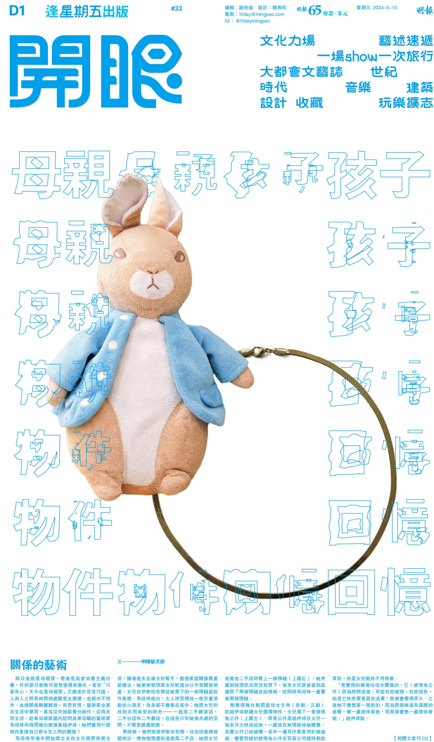 「我覺得的確幾似母女關係的,它(彼得兔公仔)因為時間流逝,可能有些破損、有些褪色,但是它依然需要留在這裏,我都會覺得長久。之後她不會想要一個新的,因為那個味道有溫暖的感覺,會一直陪伴着她,而我都會想一直陪伴着她。」趙伊禕說。
