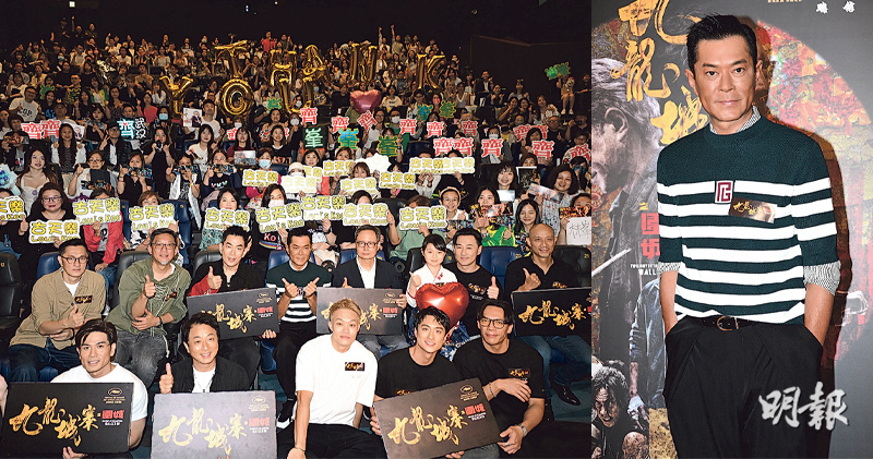 【明報專訊】《九龍城寨之圍城》上映11天,截至昨午票房衝破3500萬,昨日監製莊澄與葉偉信、導演鄭保瑞,聯同古天樂(古仔)、任賢齊(小齊)、林峯、劉俊謙、伍允龍、胡子彤、張文傑、喬靖夫、張松枝及王尹菁(魚蛋妹)現身尖沙嘴戲院,答謝觀眾支持,現場有觀眾表示看了13次。