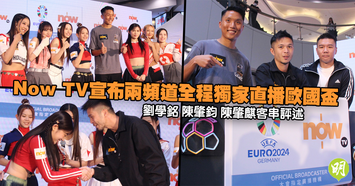 歐洲國家盃將於下月15日凌晨揭幕,今屆賽事續獲香港獨家播放權的Now TV,今午(13日)在觀塘APM舉行發布會公布詳情。3名屆時將任嘉賓的港足現役及前代表陳肇鈞、劉學銘及陳肇麒均有亮相,其間與擔任今屆歐國盃大使的女團COLLAR互動切磋球技。
