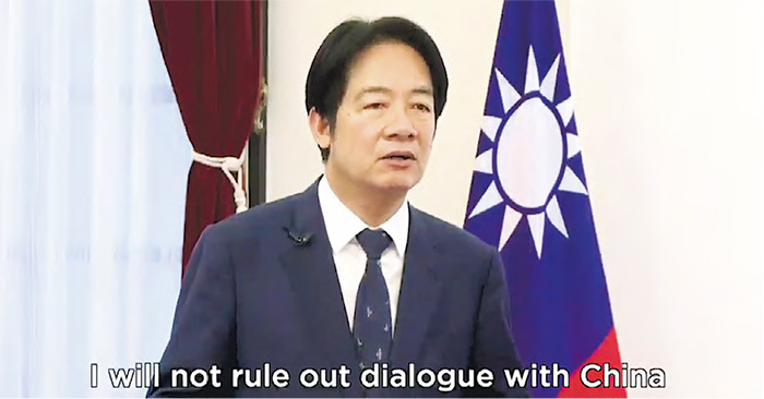 賴不排除互尊重沒前提下與陸對話 指倘衝突不會止於台海 須嚇阻威權敵意
