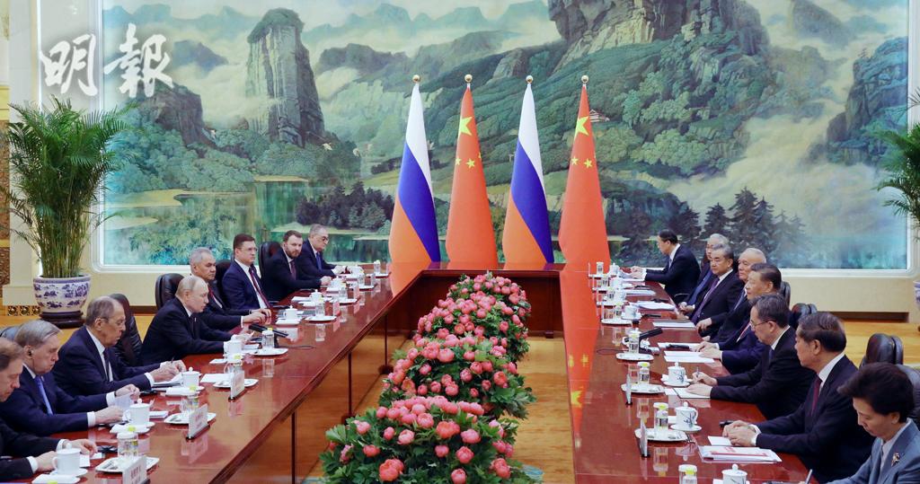 習近平和普京此前舉行大範圍會談,習近平指出,中俄同為聯合國常任理事國和主要新興市場國家,雙方加大戰略協作深度、拓展互利合作維度,順應世界多極化和經濟全球化的歷史大勢是共同的戰略選擇。