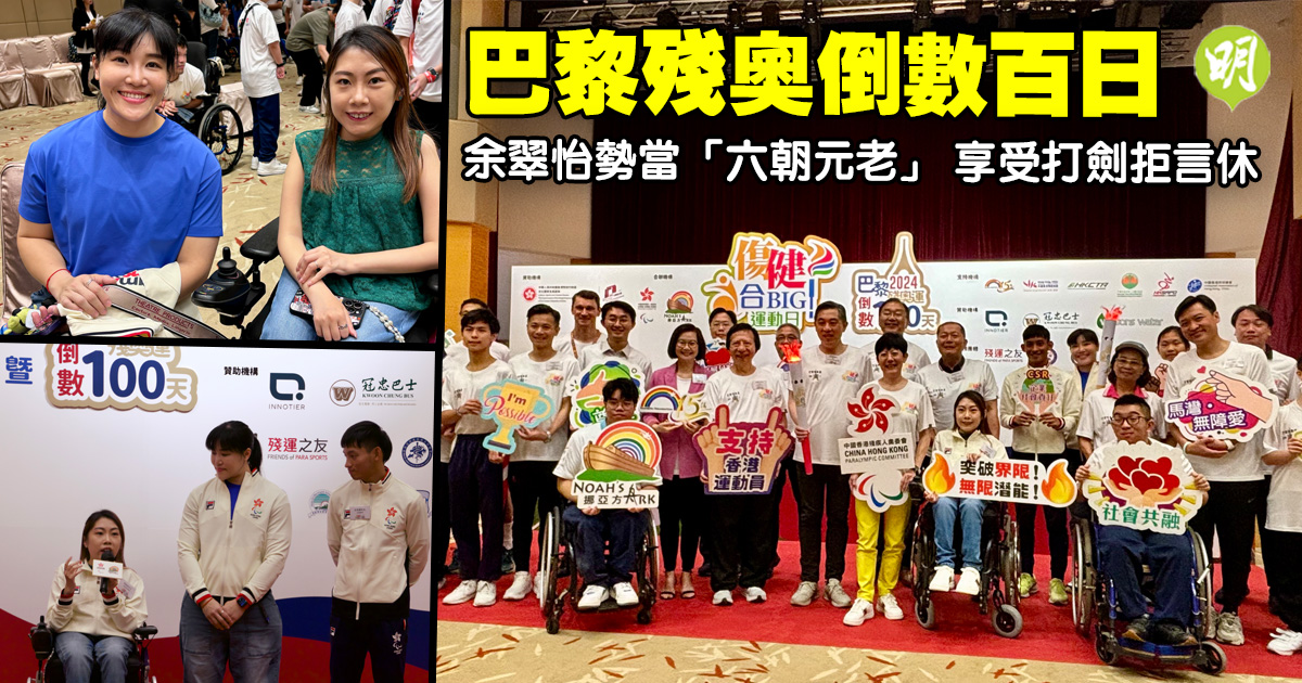 中國香港殘疾人奧委會與香港挪亞方舟今(17日)於馬灣合辦「傷健合 Big」運動日,同時迎接巴黎殘奧100天的倒數,數名港將均受邀到場。其中港隊「輪椅劍后」余翠怡,表明仍然喜歡輪椅劍擊,未有退役念頭,並透露將到巴西出戰世界盃分站,爭取在巴黎殘奧以更佳排名出戰。