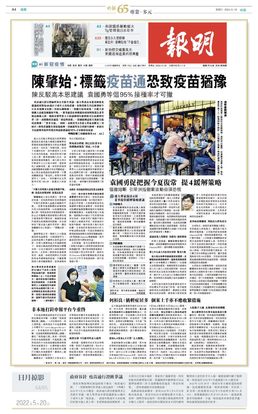 2022年5月20日:政府谷針 疫苗通行證掀爭議