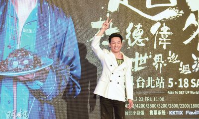 【明報專訊】杜德偉(Alex)前晚圓夢首度登台北小巨蛋舉行《Get Up起來》世界巡迴演唱會,圈中好友梁家輝夫婦、鍾鎮濤夫婦、上山詩鈉等專程從香港飛台灣捧場。甫開場,Alex即跳唱多首快歌炒熱全場氣氛,之後再獻唱經典情歌,勾起歌迷集體回憶,不時全場大合唱。
