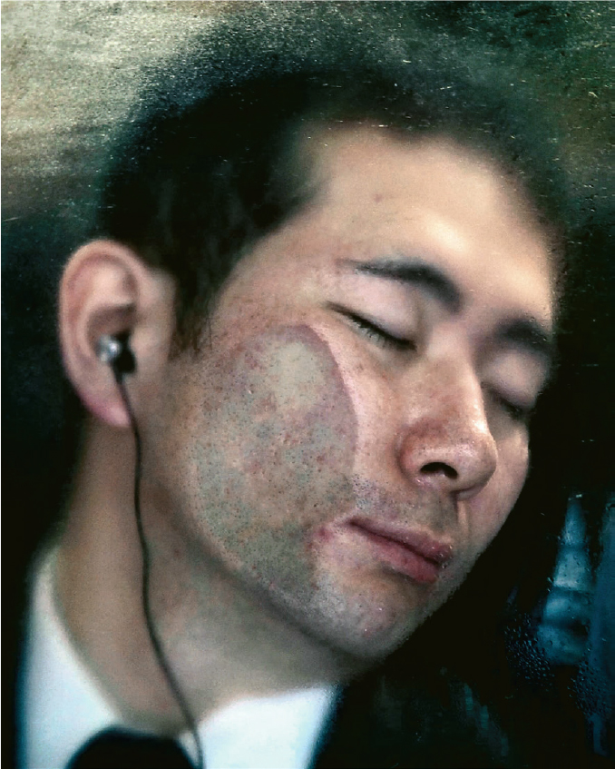 【明報專訊】記得有次到東京旅行,搭上一架滿員電車,夾在乘客之間動彈不得,感覺好不自在,但日本人早已對這種通勤模式習以為常。著名德國攝影師吳爾夫(Michael Wolf)拍過高密度的香港建築,也記錄過日本上班族的擠車情景。他在2010年起,連續4年,每年到下北澤站4星期,隔着車門玻璃捕捉乘客處身擠迫車廂的表情和肢體動作。照片中大多數人都是閉起雙眼,面無表情,難以察覺他們的情緒,反而從那貼近玻璃、繃緊的手指能感受到他們的不安和難受。Tokyo Compression系列的其中72張照片和8幅平版印刷來到了上環Flowers Gallery,照片在畫廊中橫向並排展示,驟眼看就似一列電車駛過。