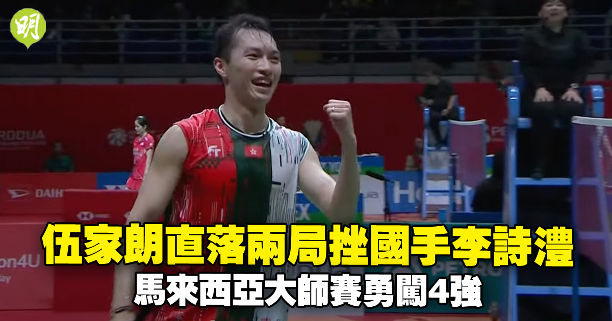香港羽毛球隊星將伍家朗今(24日)在馬來西亞大師賽再傳捷報,他在男單8強以直落兩局21:13、21:15擊退賽事3號種子國家隊的李詩澧,將在4強與東道主球手李梓嘉合演上站泰國公開賽決賽翻版。另一港隊新星吳英倫以17:21、21:15、14:21不敵國家隊的陸光祖,無緣4強。