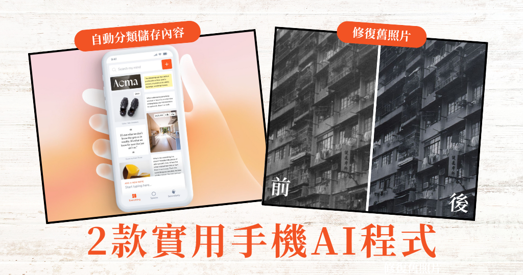實用手機AI程式:MyMind自動分類儲存內容、Remini修復舊照片 (08:53)