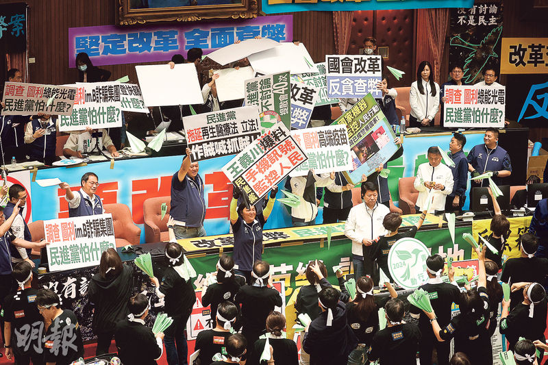 【明報專訊】歷經4次院會,台立法院會昨(28日)三讀修正通過立法院職權行使法部分條文,包括被質詢人若有藐視立院行為,可處2萬元(新台幣,下同)以上20萬元以下罰款;將常態化邀請領導人至立院進行報告,回答立委口頭提問。國民黨團稱「陽光照進國會」,短期內將成立「在野黨特偵組」查弊案;民眾黨團更稱下階段憲政改革要推動廢除監察院。