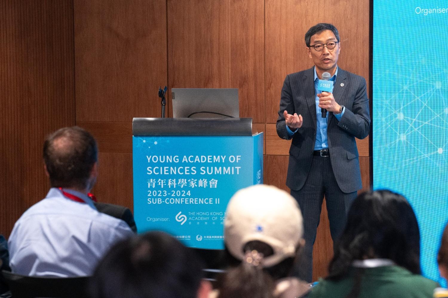 香港青年科學院今(30日)舉行青年科學家峰會第二場分會議,邀請青年科學家、知名學者及專業人士等,分享人工智能在量子科學、工程及建築業的最新技術及應用。活動主禮嘉賓、香港科技園公司行政總裁黃克強致辭時指,人工智能正推動社會改變,呼籲年輕人關注科技發展,共同踏上科技之路。他亦指,香港科研基礎實力雄厚,科技園會繼續支持研發工作,提供創業孵化服務,協助初創將基礎研究成果商業化。