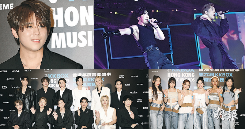 【明報專訊】男團MIRROR前晚演出《第六屆KKBOX香港風雲榜》音樂會,壓軸登場勁歌熱舞,成員邱傲然(Tiger)跳甩鞋,台下觀眾尖叫聲不斷。姜濤與盧瀚霆(Anson Lo)日前在社交平台透露身體不適,姜濤打完籃球肚痛,Anson Lo持續半月頭暈,但沒有影響他們演出,表現專業。姜濤開玩笑認財多身子弱,Anson Lo的身體檢查報告未出,公司曾叫他休息,為不想令粉絲失望盡力表演;不過他與呂爵安(Edan)的耳機被調轉,對演出有影響。陳卓賢(Ian)個人演唱會傳加到7場,他表示不清楚,仍欠飛債,歡迎加場,自信體力能應付。