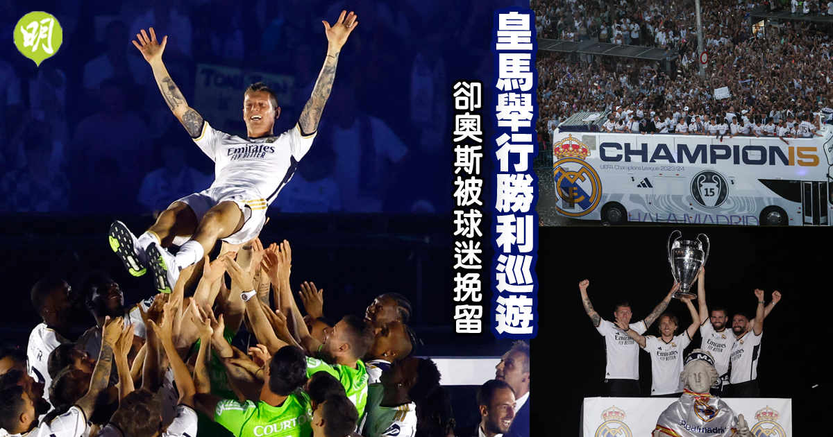 皇家馬德里日前在歐聯決賽挫多蒙特奪標,今晨(3日)坐開蓬巴士在市內舉行勝利巡遊,沿途以萬計球迷夾道歡呼,其間有球迷高呼要求德國隊中場卻奧斯改變初衷留隊,但他只以「非常感謝難忘的10年」回應,疑去意已決。另外,轉會權威羅曼奴在社交網站X稱,皇馬將在下周宣布法國隊前鋒基利安麥巴比加盟。