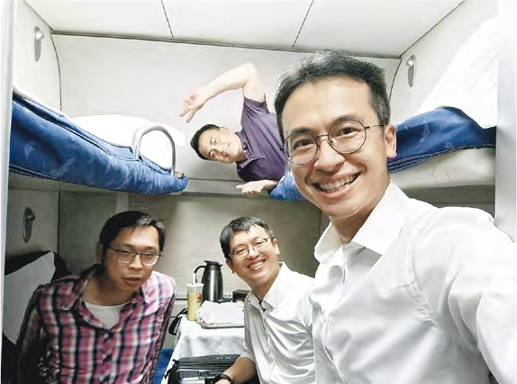 【明報專訊】原本往來香港至上海同北京西站嘅城際直通車,將改以高鐵「動臥列車」取代,今個月15日起通車,班次「夜發朝至」。曾坐過動臥列車嘅勞福局副局長何啟明噚日喺facebook出post,分享舊年由深圳坐火車去北京嘅經驗。佢話如果4個朋友一齊預約,可以坐卧舖車廂,甚至可以夜晚鎖門瞓覺添。佢又貼出上年3月同工聯會立法會議員陸頌雄、郭偉強等人搭列車上京嘅相,見到佢哋4人「包廂」,一人一張牀,鬼咁歎。