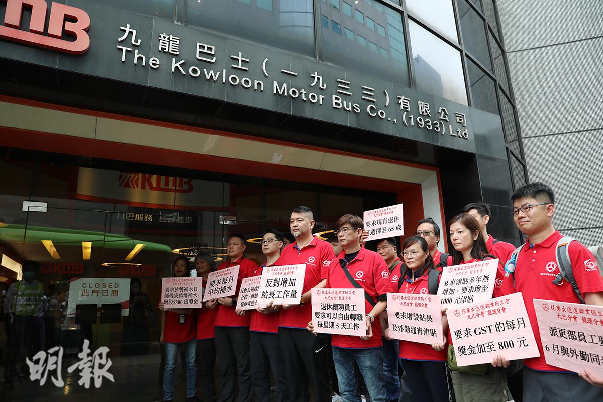 即時港聞 九巴龍運工會要求加薪8% (17:14) 發佈於 1 年 前 2024 年 6 月 5 日 By 明報 汽車交通運輸業總工會九巴及龍運巴士分會與公司就薪酬調整召開首次會議,工會要求今年加薪8%,並向資方提出發放節日上班津貼300元、增聘人手及增加資源等。 兩間工會又提出,資方應容許員工選擇於65歲退休、每月平均「補水」、增設站長、督察、派更通宵津貼;反對增加站長工作量及反對資方強制要求督察考巴士牌。 工會代表不滿,資方要求一名站長同時監察十多條路線運作,而且生活物價不斷上漲,使員工的生活負擔持續加重,期望資方加薪,減低生活壓力。 相關文章:九巴加薪編輯推介龍運 Up Next 終審法院兩名英國非常任法官辭職 (21:36) 不要錯過 海關檢5700萬元私煙 拘一男 (16:56) 繼續閱讀 贊助商 猜你喜歡 城巴前線員工加薪2.5% 追溯至上月 龍運巴士撞貨車致兩死六傷 其中一傷者入稟索償 (16:19) 巴士慈雲山撞樹椏 玻璃爆裂 (10:19) 九巴及龍運員工全體加薪2.5% (18:39) 樺加沙|城巴S1號線有限度運作 九巴B1及B9頭班車將開出 (16:05) 樺加沙|九巴及龍運逾80條路線若情况許可 將於晚上9時20分起恢復行駛 (19:43)