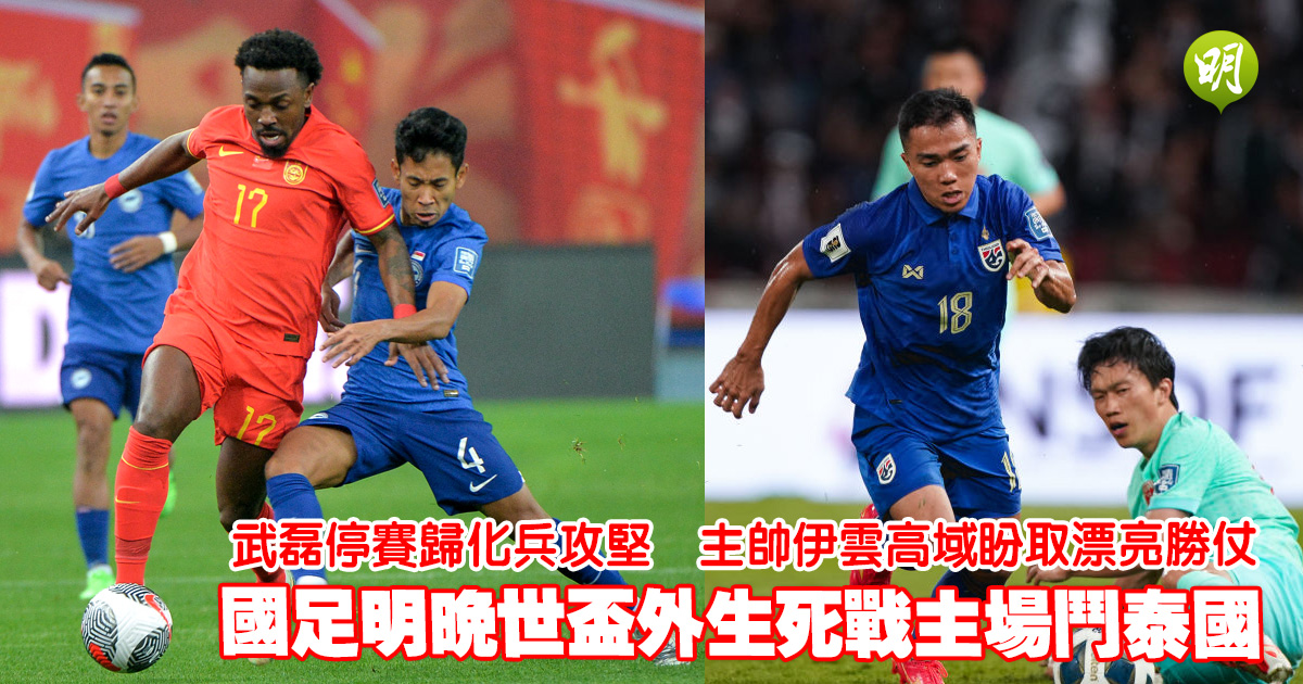 世盃外︱國足明晚出線生死戰主場鬥泰國 武磊停賽歸化兵攻堅 主帥伊雲高域盼取漂亮勝仗 (20:09)