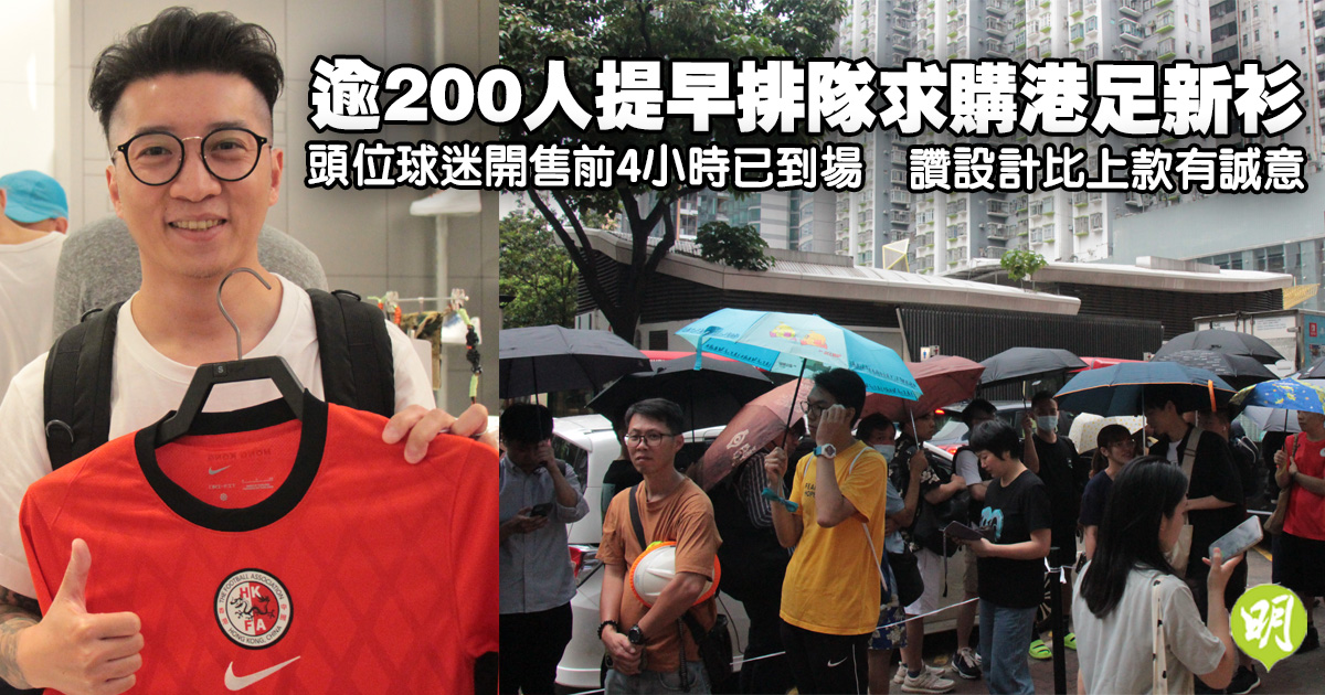 香港足球代表隊昨晚(4日)公布推出新球衣,其中球迷版主場球衣今午(5日)3時在旺角率先公開發售;當中排頭位的球迷早在開售前4小時到達,盛讚新球衣設計比上一款更有誠意。