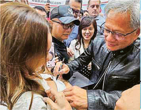 【明報專訊】話說人工智能晶片嘅龍頭公司Nvidia(美:NVDA)創辦人兼行政總裁黃仁勳,近日去咗台北國際電腦展,遇到女粉絲「挺胸而出」要求黃仁勳喺佢嘅心口上簽名(圖),面對女粉絲咁突然嘅要求,黃仁勳就露出佢嘅靦腆笑容話「係咪好主意嚟(Is that a good idea)?」但最後亦為呢位女粉絲完成咗呢個「心口既願望」。