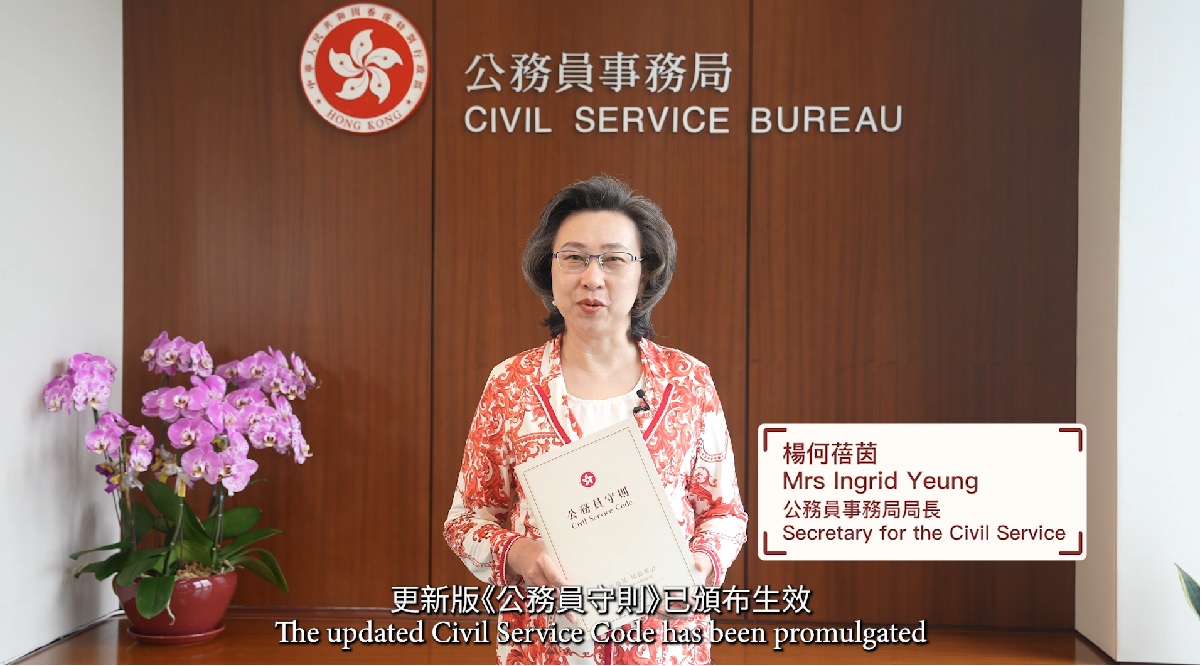 公務員事務局長楊何蓓茵指,更新版《守則》內容已考慮各持分者,包括公務員中央評議會、公務員團體和個別公務員的意見而敲定,公務員必須遵守與更新版《守則》要求相符且切合社會對公務員的期望的操守準則。