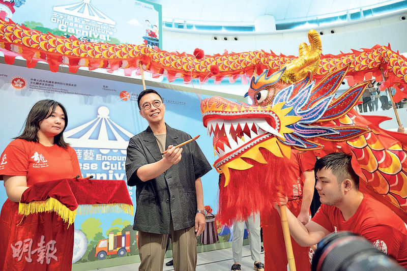 港聞 【Emily】《多彩華藝》嘉年華萬人參與 發佈於 1 年 前 2024 年 6 月 10 日 By 明報 【明報專訊】被列為本港下半年盛事之一、為期4個月嘅首屆「中華文化節2024」,其中一項活動《多彩華藝》嘉年華噚日喺沙田新城市廣場舉行。適逢今日端午節,文化體育及旅遊局長楊潤雄(左二)噚日應節,即場學摺紙龍舟同製作端午節香包,並手持毛筆為舞龍「點脷」。嘉年華有多項活動,吸引約13,500人次參與。由康文署策劃嘅嘉年華設有8個文化攤位及工作坊,涵蓋多項非物質文化遺產技藝,包括吹糖、中式書法、中式剪紙、廣彩製作、香港中式長衫製作和粵劇頭飾製作。 相關文章:中華文化節 Up Next 稱港大對中國重要 黃玉山籲保金字招牌 不要錯過 城巴紅磡訓練 過路少女遭撞飛危殆 繼續閱讀 贊助商 猜你喜歡 第二屆中華文化節4月至6月舉行 重點介紹西安 (17:00) 【香港】女扮男生 《木蘭》《英台》大異小同 多彩華藝嘉年華沙田舉行 楊潤雄:冀提升市民對中華文化興趣 (18:49) 【Emily】6至9月首屆中華文化節 過百場活動 預留2000萬元籌辦 首屆中華文化節6至9月舉行滬成焦點城市 將辦上海文藝項目 (16:17)