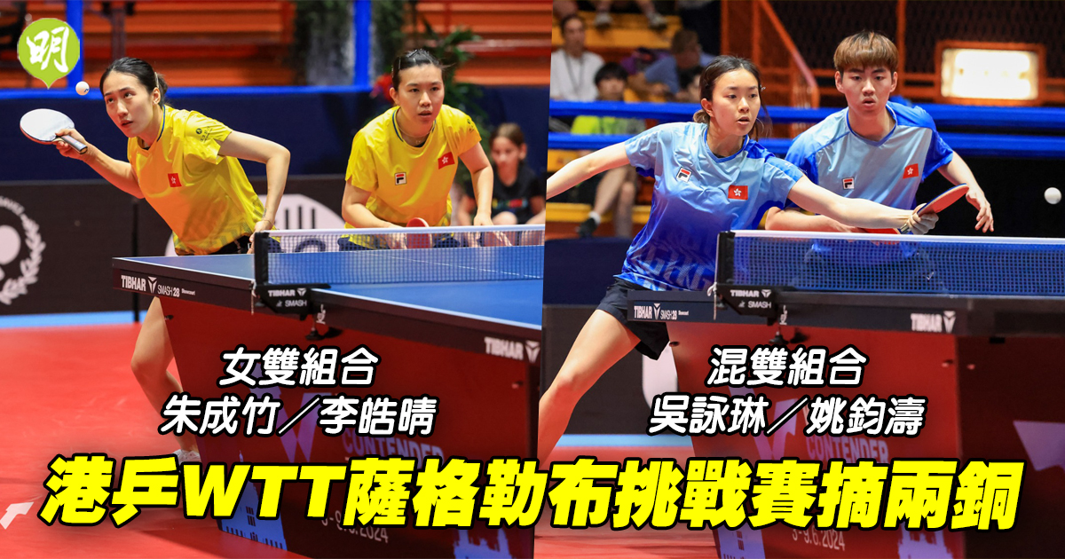 WTT薩格勒布挑戰賽昨晚(8日)假克羅地亞續演,港隊代表李皓晴/朱成竹和姚鈞濤/吳詠琳,分別於女雙及混雙4強止步,為港隊拿下兩面銅牌。