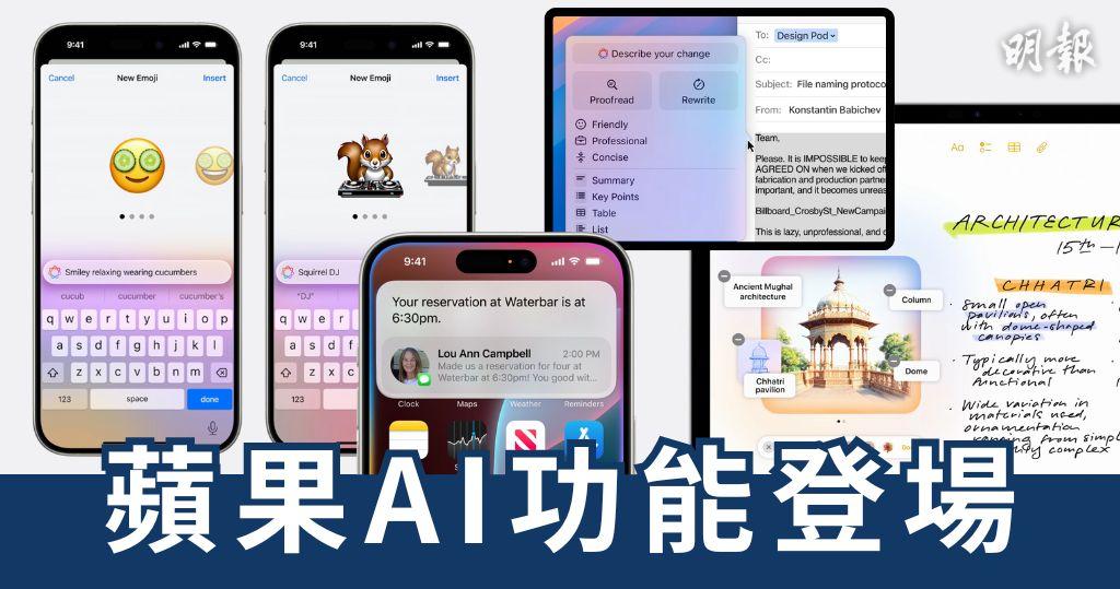 蘋果(Apple)本港時間凌晨舉行發布會,公布一系列以Apple Intelligence為名的全新人工智能(AI)工具。本文整理部分重點功能。