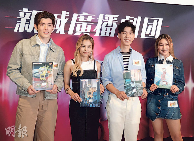 【明報專訊】李幸倪(Gin Lee)、林奕匡、洪助昇、黃淑蔓及張佳添聲演新城電台重啟廣播劇頭炮《不如見一面》,昨日舉行記者會。Gin Lee與林奕匡表示今次是他們第四度聲演合作,甚有默契,不過因用現場環境表達情景,例如他們「煲電話粥」就直接打電話,撞杯扮飲水等,不做聲音效果,所以都有難度。Gin Lee說:「有場戲講林奕匡抱起我轉圈,初時不知如何表達,幸好得洪助昇、黃淑蔓幫助,洪助昇擦身上風褸製造攬抱聲,結尾我喊住跑到喘氣去搵林奕匡,都要揣摩和試了幾次,初時好假,大家都忍不住笑,最後獲大家幫助才得以順利完成。」他們表示今次錄《不如見一面》,有別其他廣播劇和之前聲演的動畫電影,大家一齊錄音像電影圍讀,只花8小時,一氣呵成完成10集,林奕匡說:「因聲演動畫電影,大家分開錄音,而且有休息時間。(可有壓力?)對我來講都有壓力,因為中文不好,事前要花很多時間準備和練習,我無叫太太幫忙,平時寫歌有不明的地方,都是自己上網查。」