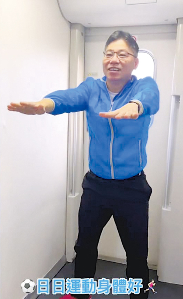運物局亦上載短片記錄局長坐車嘅一日,見到局長深夜返到車廂牀位,翻吓旅遊雜誌後瞓覺,然後噚日朝5點半起身,換上運動裝,喺車上搵位做早操,話日日運動身體好,然後先開展北京忙碌嘅工作。