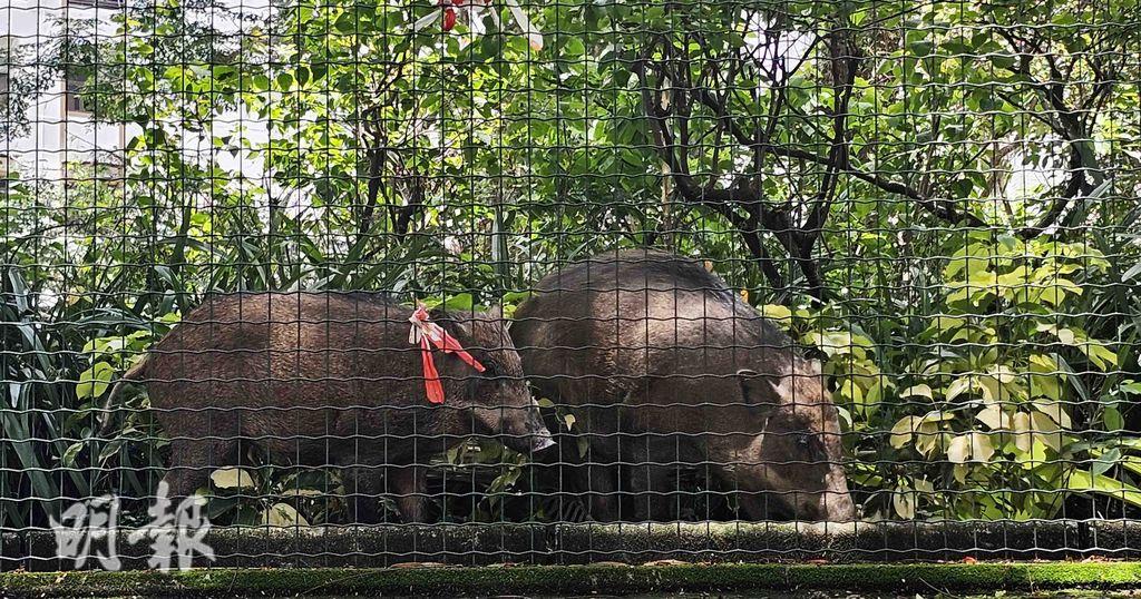 今日(19日)上午10時許,有市民報警在深水埗南昌街與大埔道交界發現一大一小的野豬。警方接報到場處理,野豬其後走入約700米外上李屋花園,警員持長盾戒備,並封鎖花園出入口,有市民不滿要繞道而行,一度與警員口角。至11時許,漁護署職員到場帶同麵包、捕網及盾牌到花園內圍捕野豬。