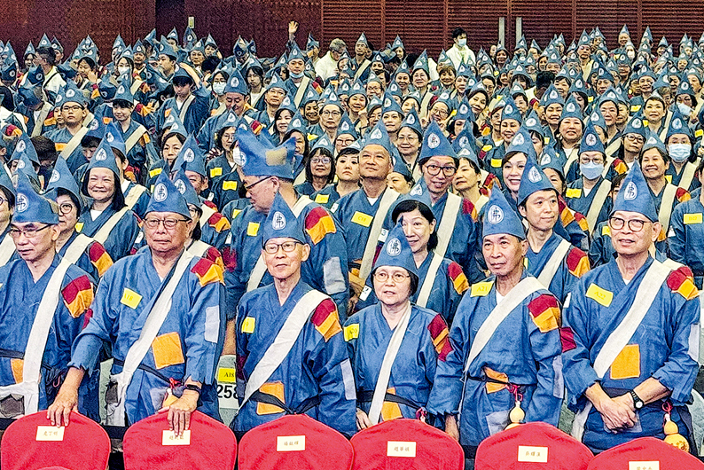 【明報專訊】尖沙嘴噚日出現咗700幾名「濟公」,究竟所為何事?原來香港東井圓佛會、道教通善壇、東華三院噚日舉辦「弘揚中華文化及傳承濟公精神—樂頌世界和平大典」,有逾730名嚟自學校、地區組織、宗教團體人士,喺活動上一齊著上具8項指定配件嘅濟公服飾,即場獲健力士官方機構代表確認及頒贈證書,打破咗2019年339人同時著濟公服嘅紀錄。