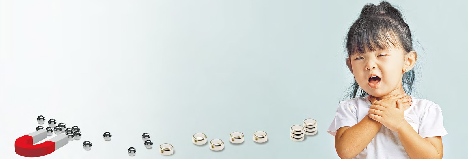 【明報專訊】兒童誤吞異物屢見不鮮,常見是骨頭、玩具配件等體積較小物件。其中電池暗藏危險,一旦吞下,輕則阻塞食道,重則嚴重化學燒傷。根據外電報道,英國每年約有2名兒童因誤吞電池而死亡。