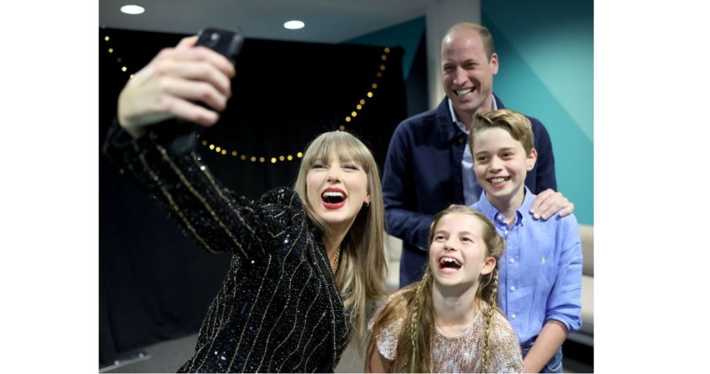 美國樂壇天后Taylor Swift周五(21日)起一連三日在英國倫敦舉行演唱會,她周六(22日)在社交網站發布與英國王儲威廉、喬治小王子及夏洛特小公主自拍的合照,似乎是在演唱會後台拍攝,Taylor Swift在帖文附上祝賀威廉生日快樂的字句。在照片中,夏洛特穿上「bling bling」閃亮的上衣,露出可愛笑容。王室亦於差不多時間在社交平台發布威廉、喬治和夏洛特與Taylor Swift的合照,4人均笑得開心。(Taylor Swift Instagram/Prince of Wales and Princess Instagram)