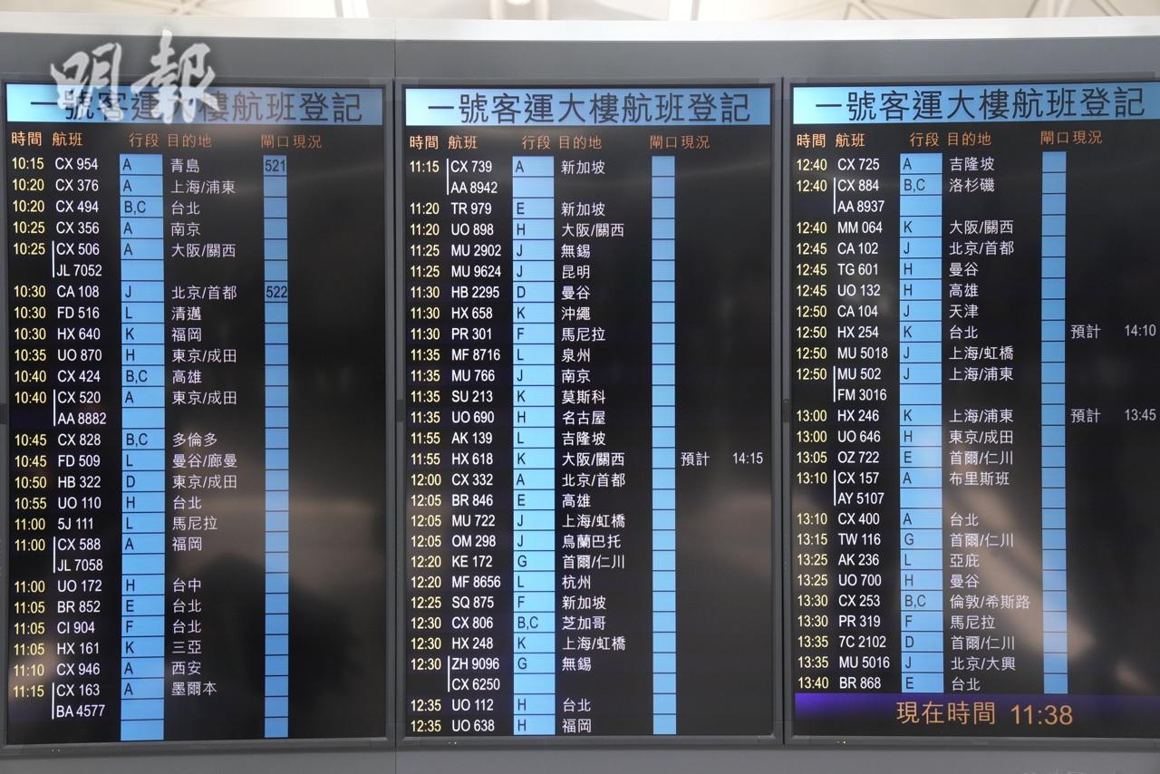 機場航班資料顯示屏幕相關系統今早7時起故障,機場大樓電子屏幕、網站及手機應用程式My HKG的航班資訊未能即時更新。