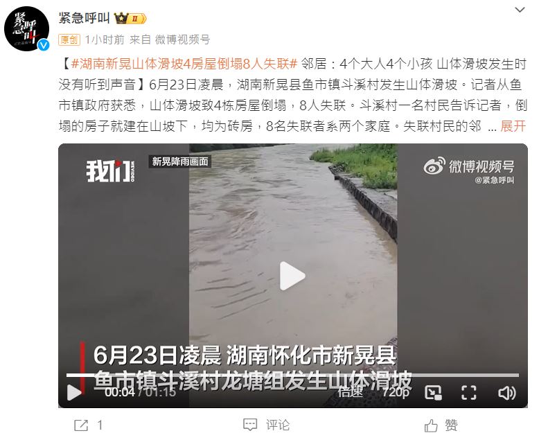 即時兩岸 湖南新晃山泥傾瀉8人失聯 (14:07) 發佈於 1 年 前 2024 年 6 月 23 日 By 明報 湖南省懷化市新晃侗族自治縣魚市鎮一條村今日(23日)凌晨4時30分發生山泥傾瀉,4棟房屋倒塌,8人失聯。當局轉移群眾,救援工作正在進行。災害發生後,該縣迅速啟動應急預案,當地應急、消防、公安、衛健等部門趕赴現場開展救援工作。內媒報道,失聯者包括4名成人、4名小孩。由於涉及面積大,致救援工作難度較大。(中新社) 相關文章:湖南 Up Next 內地發今年首個暴雨紅色預警 安徽、江西、浙江料有特大暴雨 (12:25) 不要錯過 中法研製天文衛星SVOM發射升空 (17:12) 繼續閱讀 贊助商 猜你喜歡 湖南漢藏身速遞箱入屋打劫 打掃乾淨清理罪證 落網後稱仿效電視劇橋段 (14:52) 湖南耒陽發生故意傷害案致2死3傷 (22:12) 湖南暴雨逾40萬人受災 4人亡 (13:03) 湖南澧水河一線堤防現7管涌險情 (16:38) 南方雨災 | 中國三部門調撥物資支援湖南救災 (21:47) 湖南花炮廠爆炸增至9死26傷 當局展開調查 (13:58)