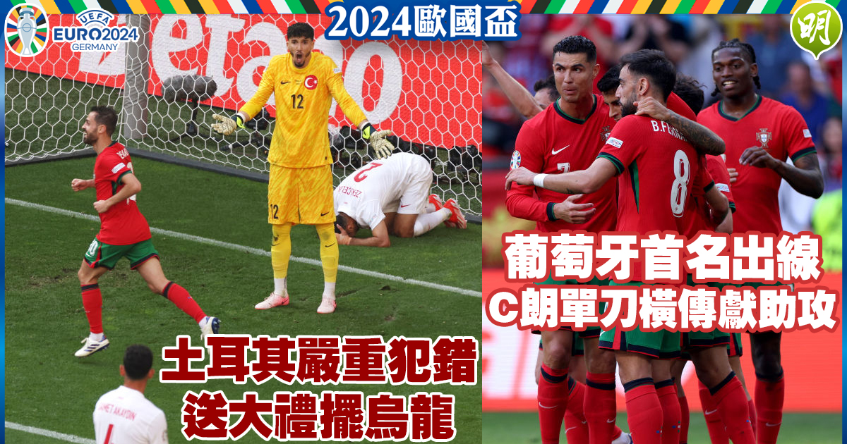 葡萄牙隊今晨(23日)在歐洲國家盃F組次仗,憑對手後防嚴重犯錯擺烏龍,加上基斯坦奴朗拿度(C朗)「單刀橫傳」無私助攻般奴費南迪斯建功,以3:0輕取土耳其隊,兩連勝提早鎖定首名出線。