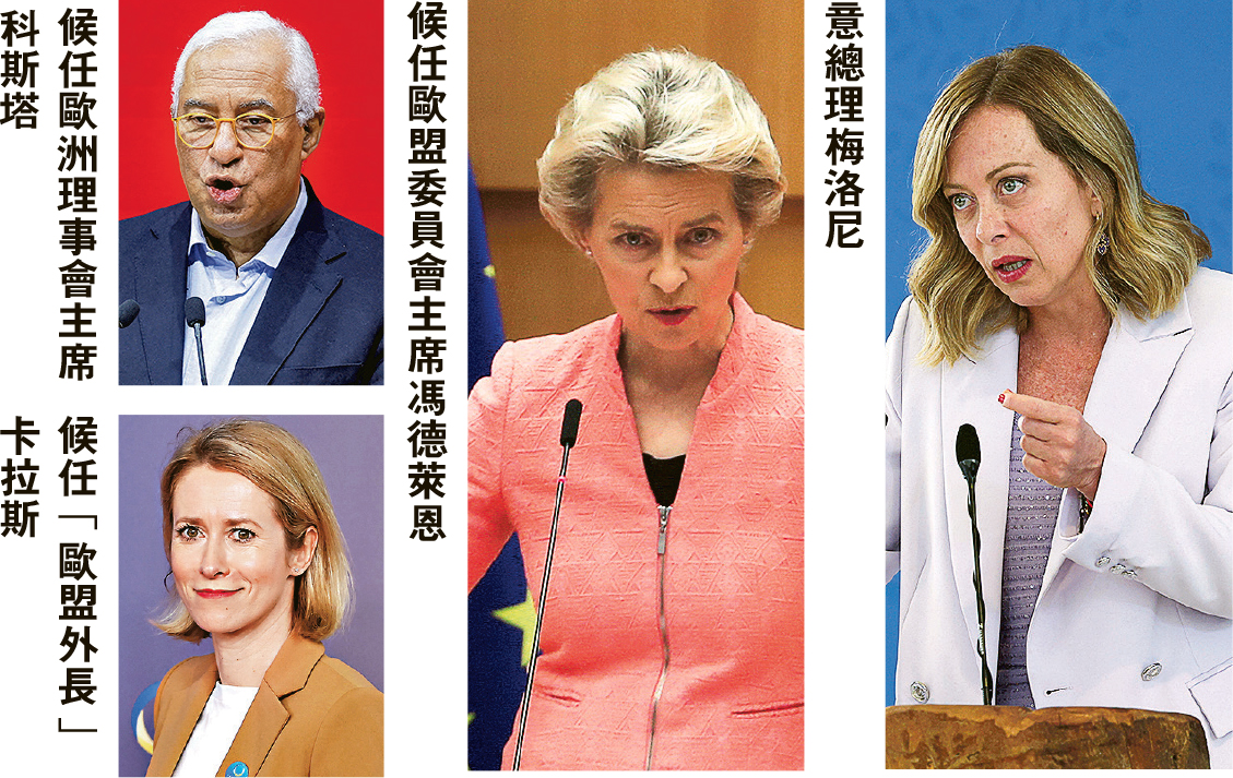 政治新聞網站Politico引述5名歐盟官員報道,希臘總理米佐塔基斯、波蘭總理圖斯克、西班牙首相桑切斯、德國總理朔爾茨、法國總統馬克龍及荷蘭首相呂特,周二(25日)作為代表歐洲人民黨(EPP)、社會主義派及自由派作談判,同意馮德萊恩連任歐盟委員會主席、葡萄牙前總理科斯塔為歐洲理事會主席,愛沙尼亞總理卡拉斯接任相當於外長的歐盟外交與安全政策高級代表。